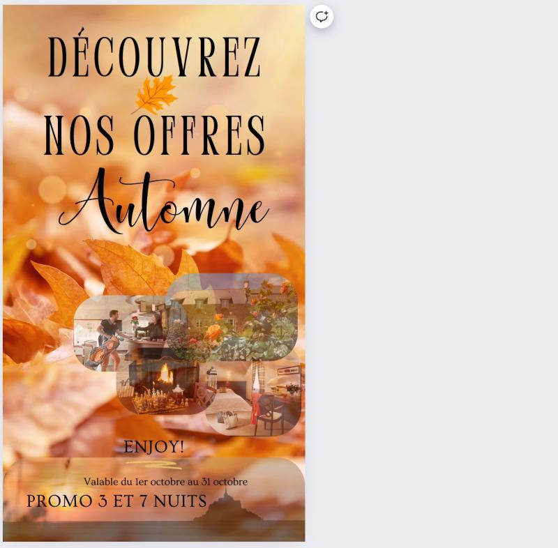Cette automne, prenez le temps de vous évader et découvrir le charme de nos hébergement! Du 15 octobre au 30 décembre, bénéficiez de -25% sur votre séjour et laissez-vous séduire par le confort, et l'atmosphère chaleureuse de notre établissement.